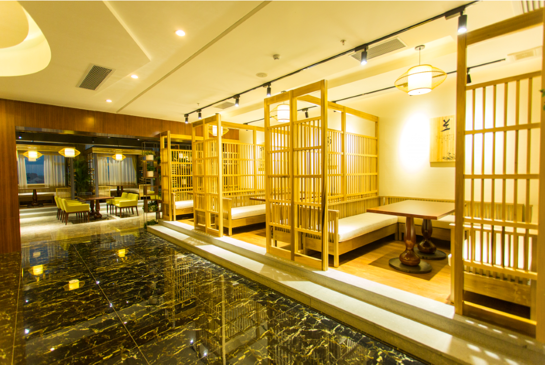 海瀛風味餐廳內以暖黃色調的燈光“彌漫”在空氣中,仿佛讓時光倒流到了那個浪漫傳奇的年華。觥籌交錯,推杯換盞。