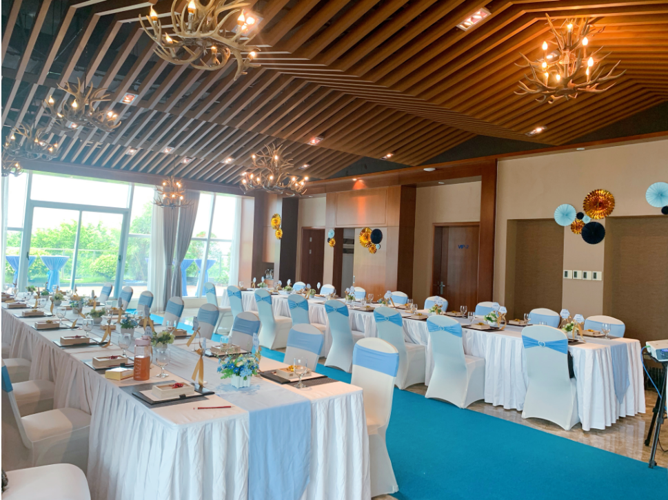 海尚風情餐廳以沉穩(wěn)的紅棕色作為主基調(diào),華麗的燈飾加上“波浪型”的鏤空天花板,兩者相輔相成,相互輝映,搭配外圍大露臺陽臺。能夠滿足家庭聚餐、中式圍餐、商務會議、自助餐、下午茶等多種場地布置。