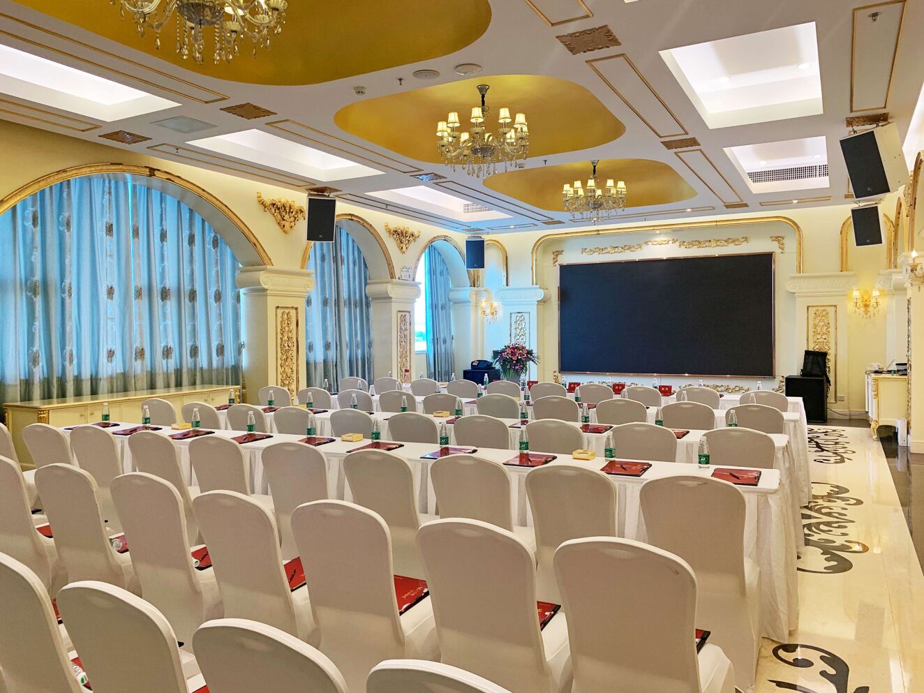 歐式的裝潢風(fēng)格,精美的裝飾、華麗的家具、和金碧輝煌的擺設(shè),盡顯雍容華貴;同時,本廳配置高清的LED顯示屏、頂級音響設(shè)備等一應(yīng)俱全的會議設(shè)施,絕對是舉辦各類宴會企業(yè)會議的首選。