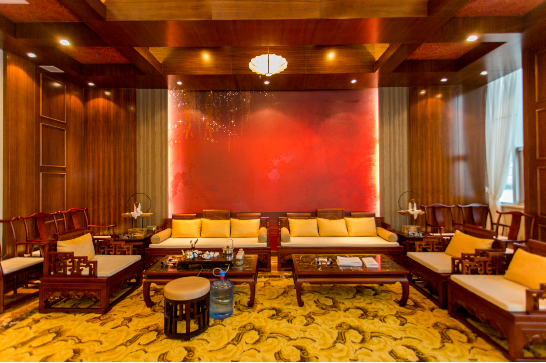 踏入御宴房,有種莫名的親切感。房間大多以木質(zhì)雕花家具為主,穩(wěn)重大氣,氣勢恢弘,墻壁的裝飾柜都是采用具有中國元素的古典物品。頂上古典韻味的吊燈更是體現(xiàn)了其獨特韻味。在等待美味佳肴上桌的閑暇之余,也可移步到隔壁的茶藝桌品嘗功夫茶,或是歡唱一首,或是前往棋牌室放松。